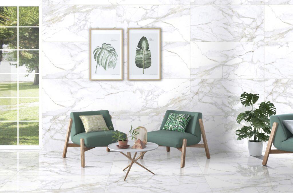 Gres szkliwiony z rodziny Calacatta wyróżnia się wyjątkowym wzorem marmurowych przeszyć nadających powierzchni niepowtarzalny charakter. Delikatnie przenikające się żyły o miękkim kontraście nadają wnętrzom eleganckiego a zarazem przytulnego wyglądu.